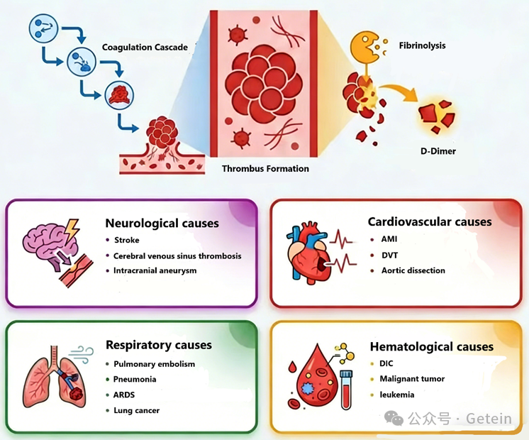 Many physiological and pathological conditions can cause fibrin formation and fibrinolysis activation, leading to elevated D‑Dimer levels, which is why correct interpretation of D‑Dimer requires comprehensive clinical assessment.