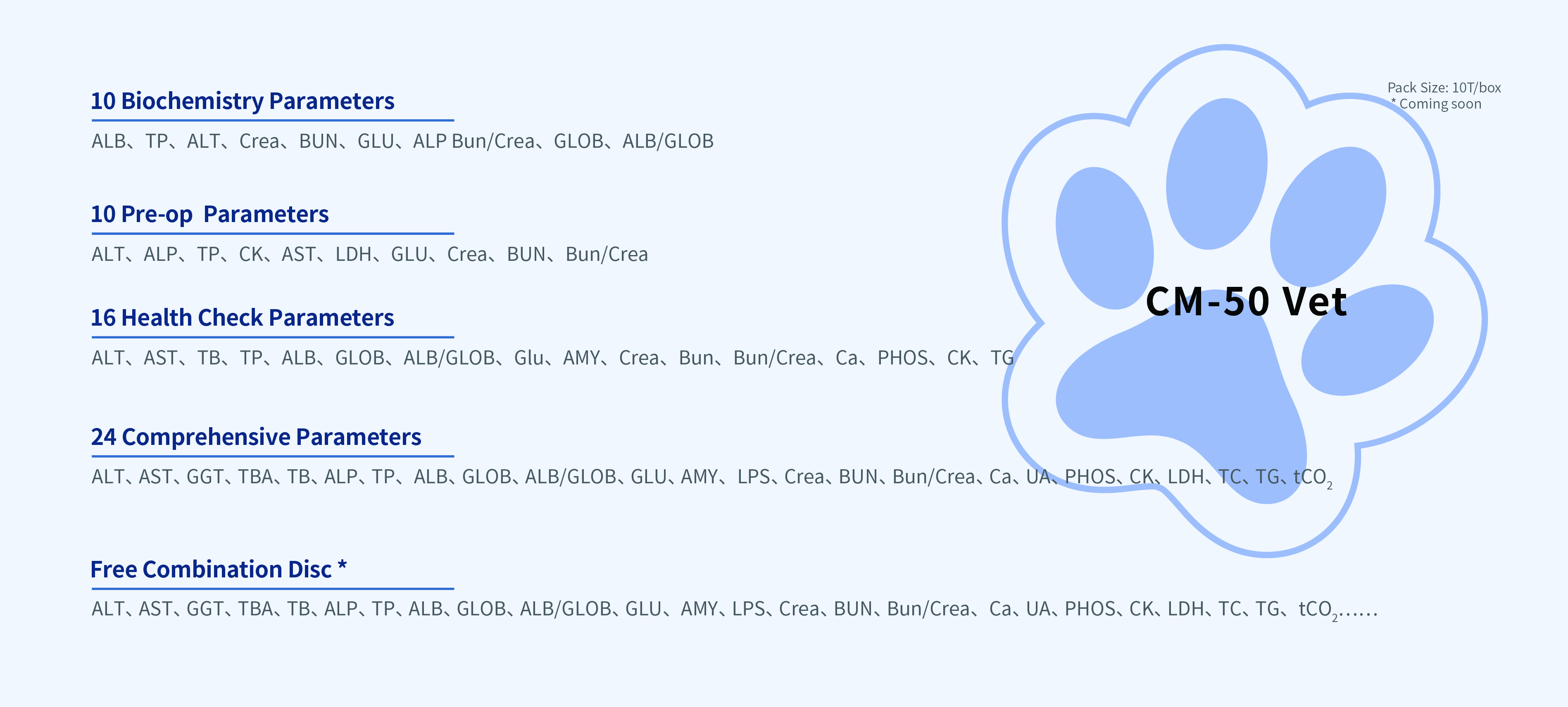O CM-50 Vet é um sistema de química veterinária compacto e automatizado. Ele processa pequenas amostras de sangue sem centrifugação e suporta múltiplos painéis de testes, tudo isso em um design que dispensa manutenção. Com fluxo de trabalho simplificado e Wi-Fi integrado, oferece uma solução de diagnóstico completa e eficiente para hospitais veterinários.