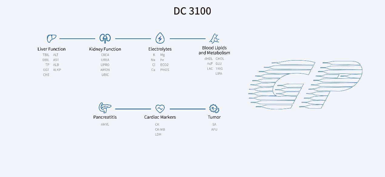 O DC 3100 é um analisador de química clínica com design compacto para bancada. Utilizando tecnologia de química seca multicamadas com consumo zero de água, oferece uma taxa de transferência constante de 400 T/H. Com um módulo ISE integrado, pode ser conectado ao MAGICL 6000 para formar o sistema Metis 600.