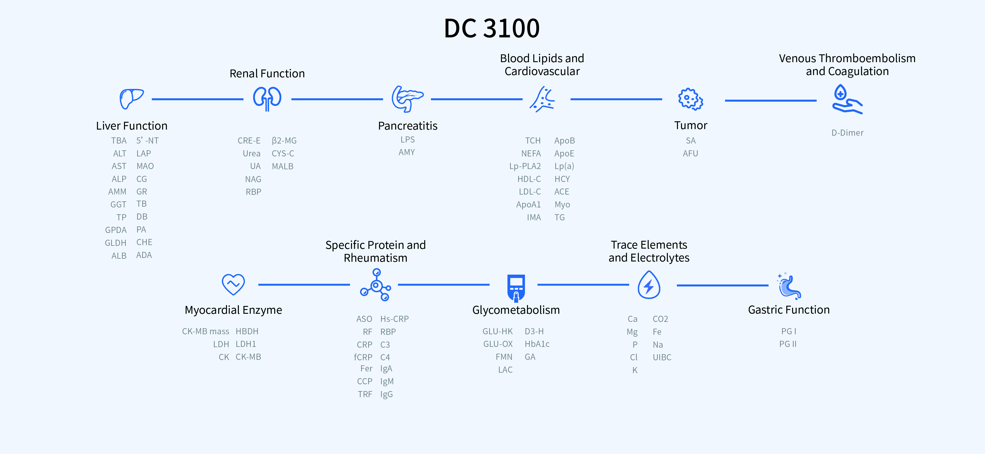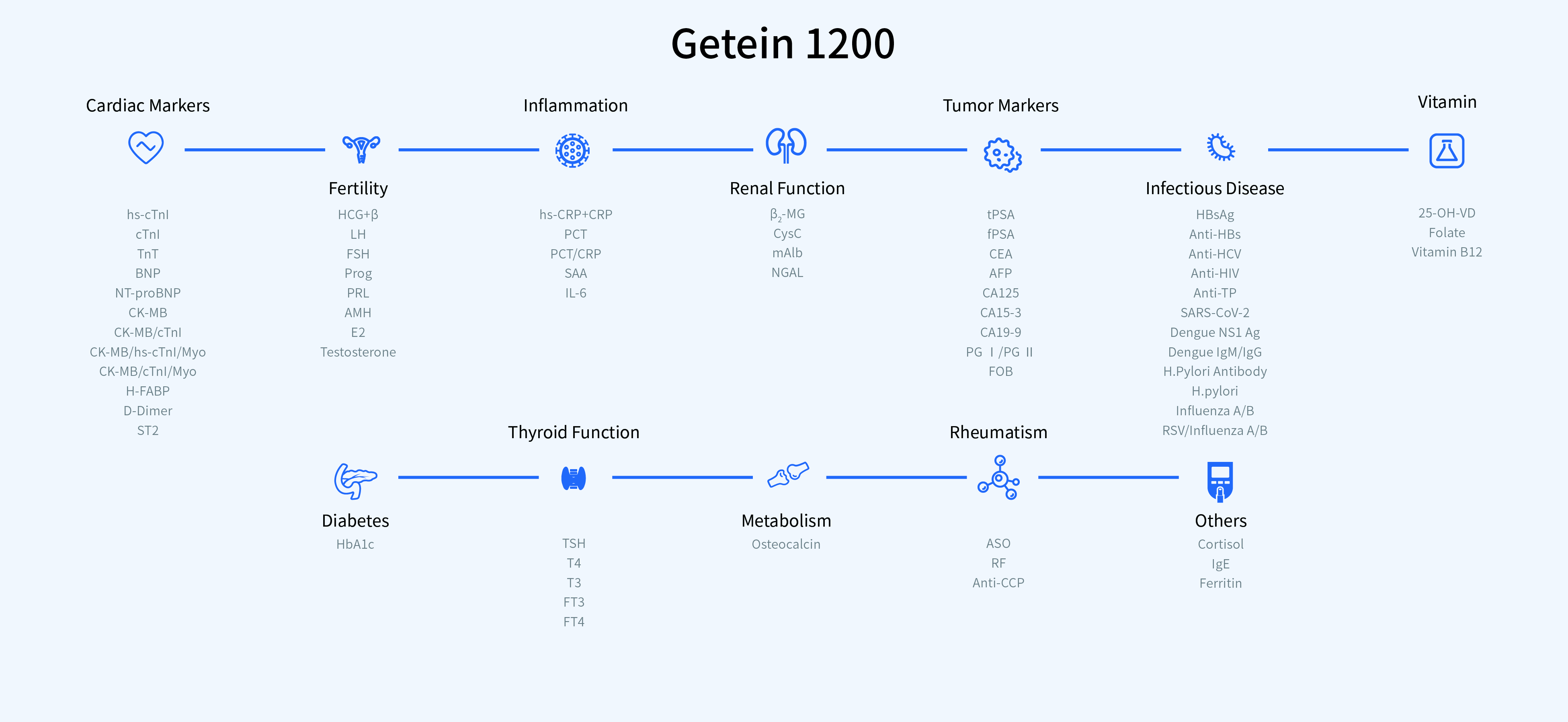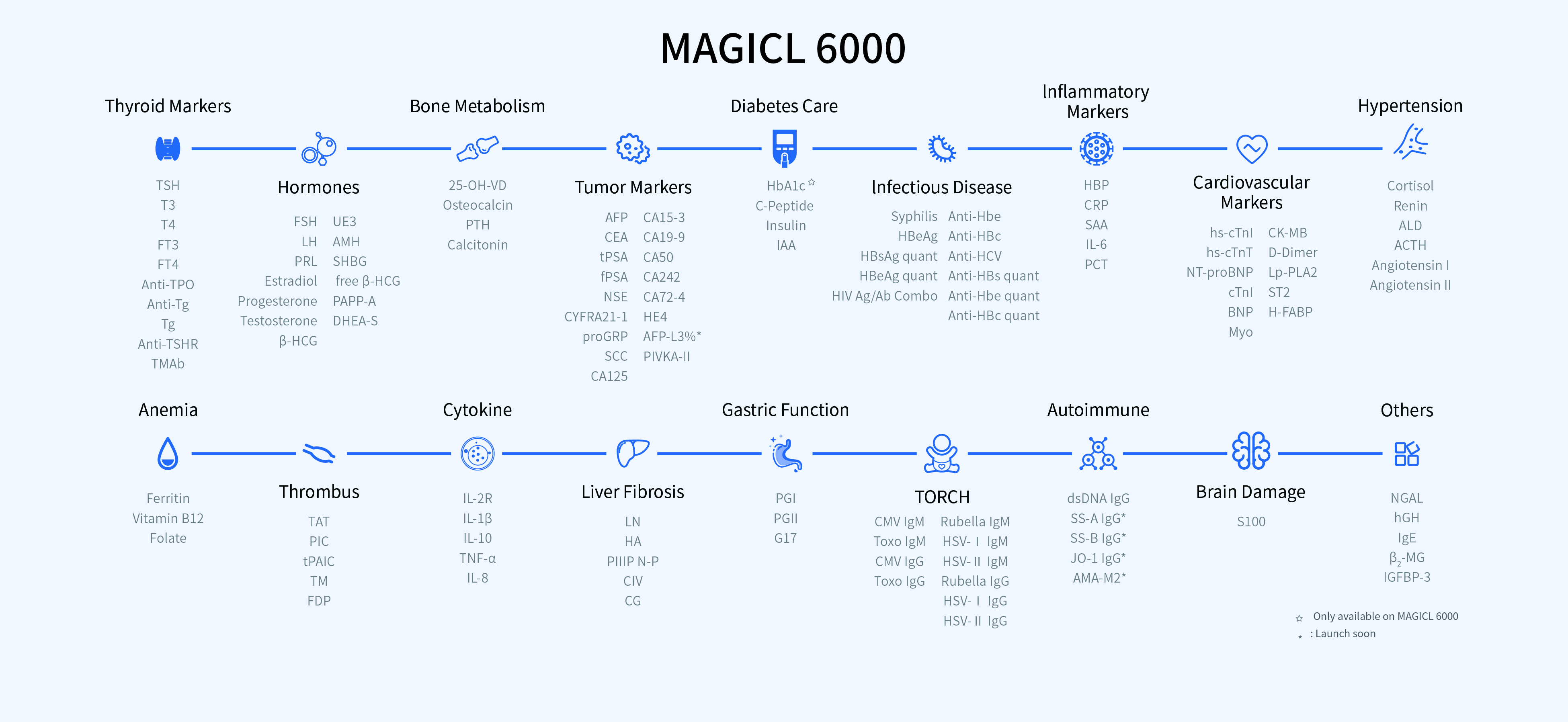 O Metis 800 é um sistema modular com desempenho excepcional, que integra perfeitamente múltiplos diagnósticos laboratoriais em uma única solução unificada. O módulo de quimioluminescência (MAGICL 6000), o módulo de química clínica (sistema seco DC 3100), o módulo de imunofluorescência (Getein 1200) e o módulo de hematologia (BHA-5100) podem ser combinados de forma flexível para atender às suas necessidades específicas.